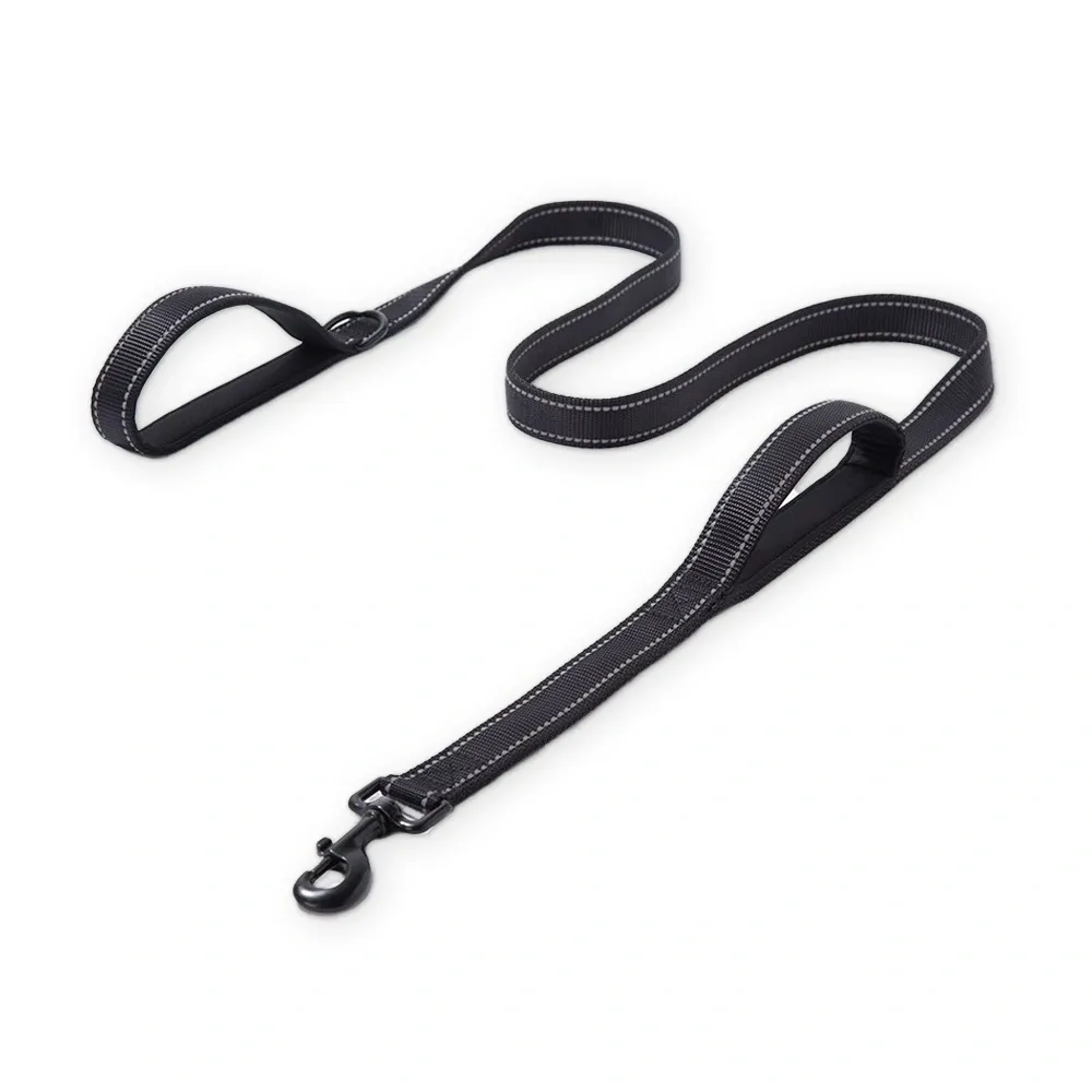 Standard flat leashes often result in handler fatigue and lack of control in crowded environments, leading to negative retail reviews from large breed owners. We engineered this Dual Handle Traffic Leash to solve these exact liability issues. By integrating a close-control traffic handle and anti-friction padding, you offer your customers a high-functionality product that commands a premium retail price point while drastically reducing return rates.